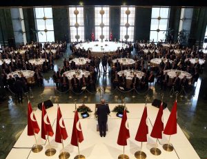 Türkiye’nin 81 ilinde hizmet veren kaymakamlarla 10 Ocak İdareciler Günü münasebetiyle 3. kez bir araya geldiğine belirterek bu buluşmaları düzenleyen Türk İdareciler Derneği yetkililerine teşekkür eden Cumhurbaşkanı Erdoğan, şehit Muhammet Fatih Safitürk başta olmak üzere görevleri başında hayatlarını kaybeden kaymakamlar için Allah’tan rahmet temennisinde bulundu.