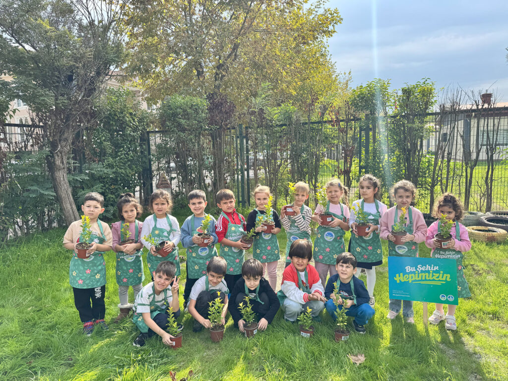 Anaokulu öğrencilerine yönelik düzenlenen projede 3 bin minik bahçıvan ektikleri fidanlarla şehrin yeşil geleceğine umut oldular.