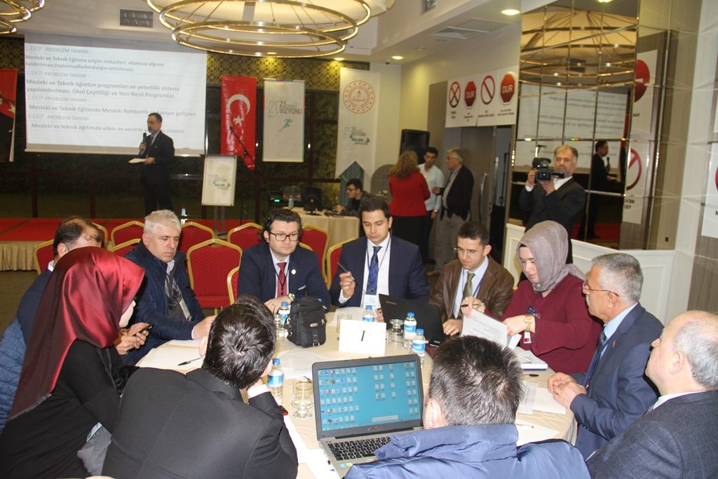 Mesleki eğitiminin ülkemiz için çok önemli olduğunun altının çizildiği çalıştayda Bakan Danışmanı Adem Çilek ve İl Milli Eğitim Müdürü Fazilet Durmuş yaptıkları konuşmalarda, 2023 Eğitim Vizyonu belgesinde mesleki eğitime özel bir bölüm ayrıldığını ifade ederek, meslek liselerimizin sektörle işbirliğini arttırarak, okullarımızda aranan elemanlar yetiştirilmesinin gerekliliğine dikkat çektiler.