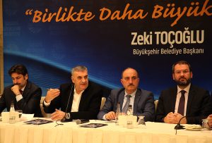 Toplantının hayırlı olmasını dileyerek konuşmalarına başlayan Başkan Toçoğlu, “2014 seçimlerinden sonra tüm il Büyükşehir hizmet alanına girdi. Bizde Büyükşehir olarak her ilçemize hizmet götürmeye çalıştık, çalışıyoruz. Adapazarı bizim lokomotif ilçemiz. İyi niyetle işler yapmaya çalışıyoruz. Belki gözden kaçırdığımız, küçük dokunuşlar ile düzeltebileceğimiz örnekler olabilir. Bunları sizlerin sayesinde çözüme kavuşturacağımıza inanıyoruz. Bu vesile ile burada toplandık. Allah’a şükür Sakarya’da çözülemeyecek bir sorun yok. Şehrimizi ciddi hizmetlerle buluşturuyoruz. Önemli bir sürece giriyoruz. Hepimiz buradayız. Sizlerin önündeyiz. Her sorunu göğüslemeye hazırız. Önümüzde 2019 seçimleri var. Bu önemli seçimi birbirimize sahip çıkarak çok verimli geçireceğimize inancım tam.”