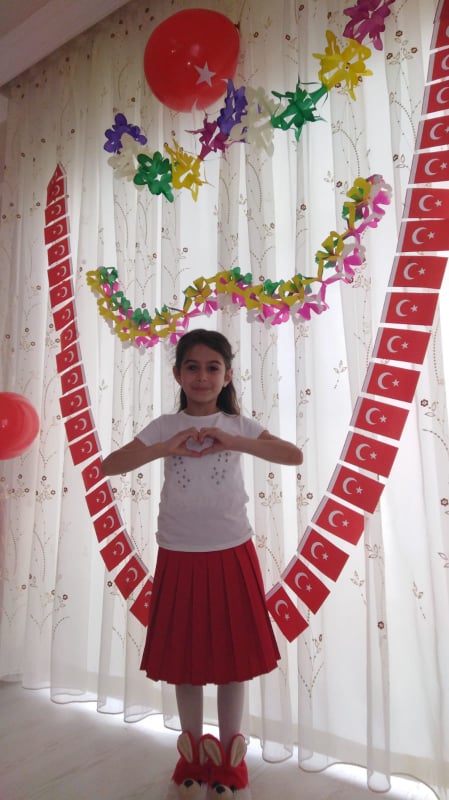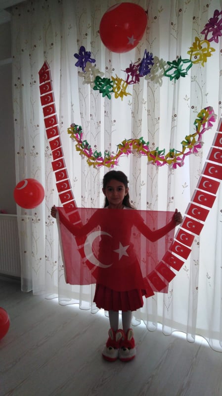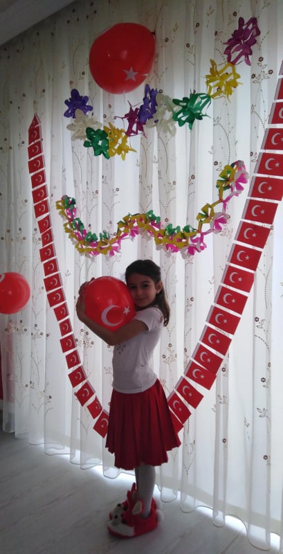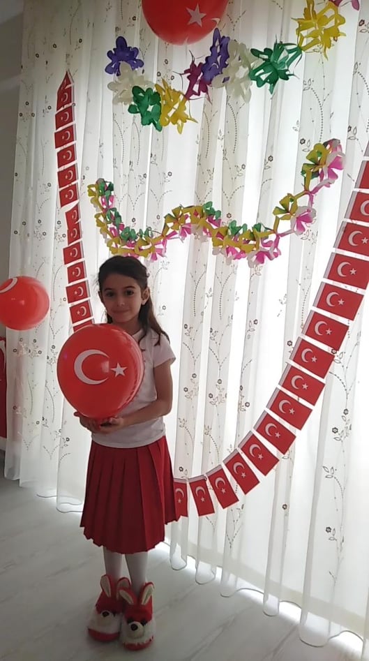 Arifiye Bekir Sıtkı Durgun İlkokulu 3-F öğrencisi Afranur Çakmak 23 Nisan Ulusal Egemenlik ve Çocuk Bayramını evde kutladı.
