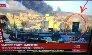 F-16’ların vurduğu Afrin’den ilk görüntüler gelmeye başladı. Sokaklarda bulunan reklam panolarında ise teröristbaşı Öcalan’ın fotoğrafı dikkatlerden kaçmadı. Bu detayı ise ilk TGRT Haber televizyonu gündeme taşıdı.