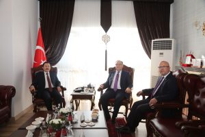 Vali Tutulmaz ve Belediye Başkanı Çoban’ı makamında ağırlayan Vali Balkanlıoğlu, misafirlerine ilimiz hakkında bilgiler verirken, gündeme dair de görüş alışverişinde bulundu.