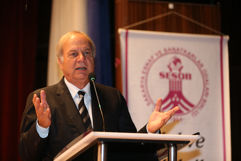 Ahlak’ın anlatılmayacağını yaşanacağını söyleyerek sözlerine başlayan SESOB Başkanı Hasan Alişan, “Esnaflar adet, gelenek ve göreneklerini bugüne kadar sürdürdüler ve sürdürmeye devam edecekler. Ahilik, kökleri çok eskilere dayanan bir geleneğimiz. Ahilik sisteminde ahi diye anılan kişi olgun ahlaklı, merhametli, iyiliksever ve her işinde her davranışında dürüst kişidir. 800 yıl evvel kurulan bu teşkilatın zamanın ekonomik, sosyal ve kültürel faaliyetlerinde düzenleyici rol üstlenmiştir. Ahilik teşkilatı bir okul gibidir. Müşteriye saygılı olmayı, haramdan uzak durmayı, alın terini esas almayı gözeten bir yaşam biçimidir. Mesleki okullarda desteklerin artırılmasını Ahilik Kültürü’nün öğrencilerimize ders olarak verilmesini özellikle istiyoruz. Başarının ve ahlaki zenginliğin bu sisteme bağlı olduğunu biliyoruz” diye konuştu.