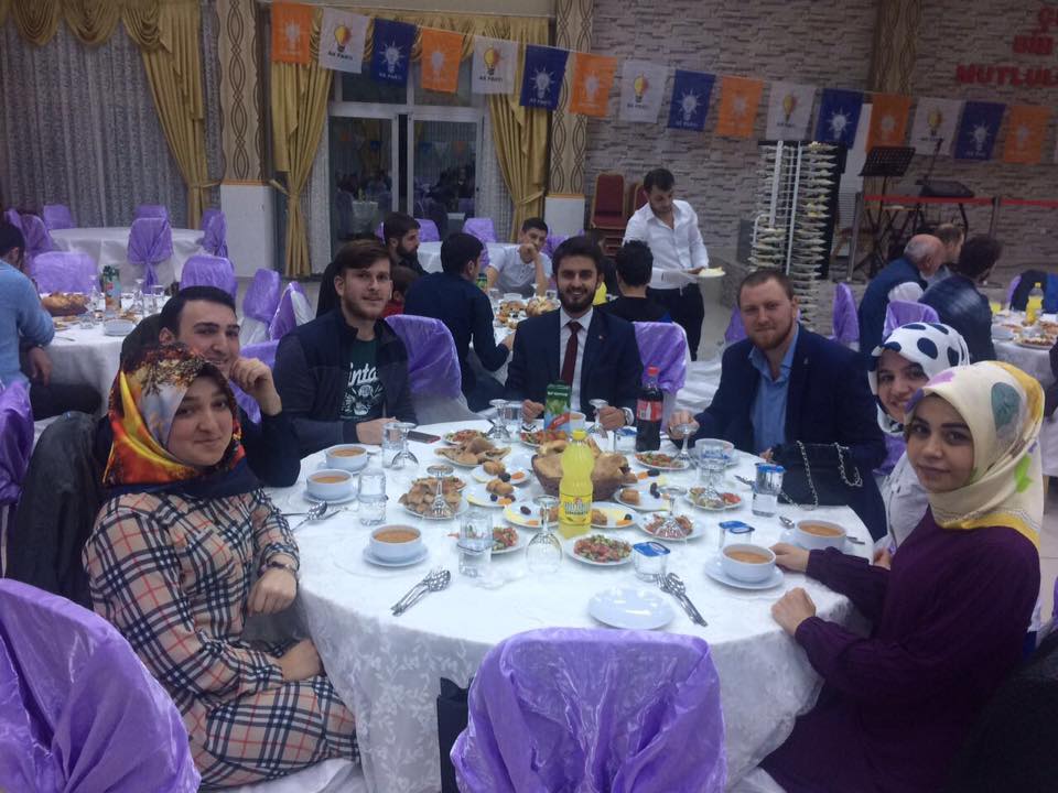 Hanlı Düğün salonunda gerçekleşen iftar yemeğine,Belediye Başkanı İsmail Karakullukçu,Eski Belediye Başkanı Nihat Arslan,Ak Parti il yöneticileri,Eski ilçe Başkanları Sinan Özkurt ,Adnan Cin,Meclis Üyeleri,Kadın ve Gençlik Kolları başkan ve yöneticileri,Mahalle Yönetimleri ile Eski Yönetim Kurulu ve Meclis Üyeleri katıldı.