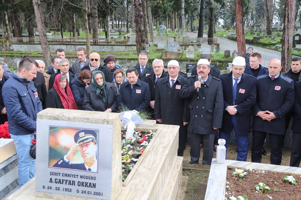 17 yıl önce hain bir suikast sonucu Şehit edilen Diyarbakır Emniyet Müdürü Ali Gaffar Okkan Hendek ilçesindeki mezarı başında saygı,rahmet ve gözyaşları ile anıldı.