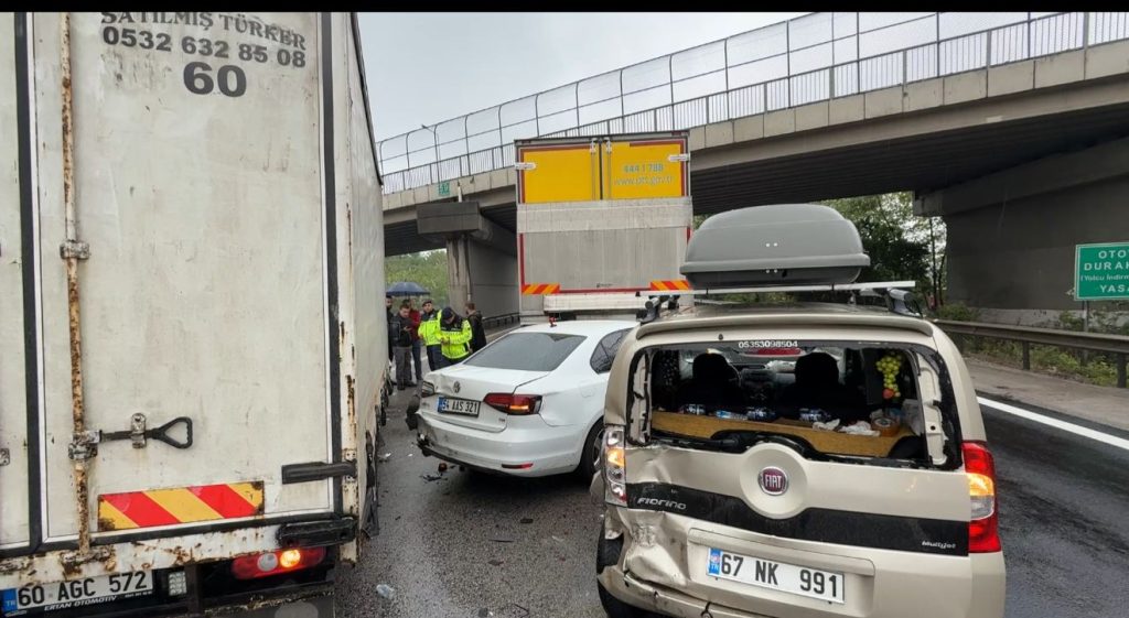 Arifiye geçişi İstanbul istikametinde İ.A. idaresindeki tır, E.B. idaresindeki 54 AA* 3** plakalı Volkswagen marka otomobil, Kasılmış Türker idaresindeki 60 AG* 5** plakalı kamyonet ve Nizamettin Karaçam idaresindeki 67 N* 9** plakalı Fiat marka hafif ticari araç zincirleme kazaya karıştı. Otoyolda meydana gelen kaza ve trafik havadan görüntülendi.