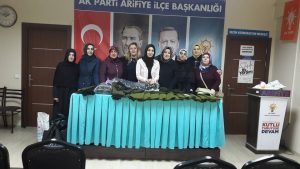 Ak Parti Arifiye İlçe Kadın Kolları Zeytin Dalı Operasyonunda ki vatan evlatlarımız ve kahraman Aziz Askerlerimiz için Arifiyeli Annelerin de desteği ile hazırladıkları içlik, boyunluk,bere,eldiven,kar maskesi ve çorap hediyelerini
