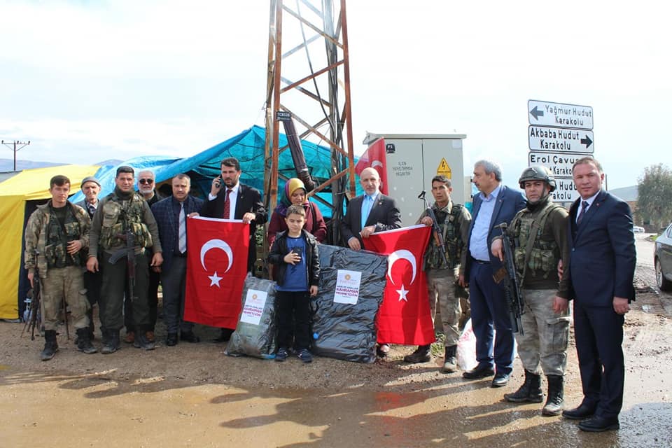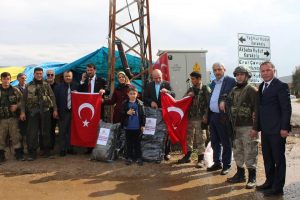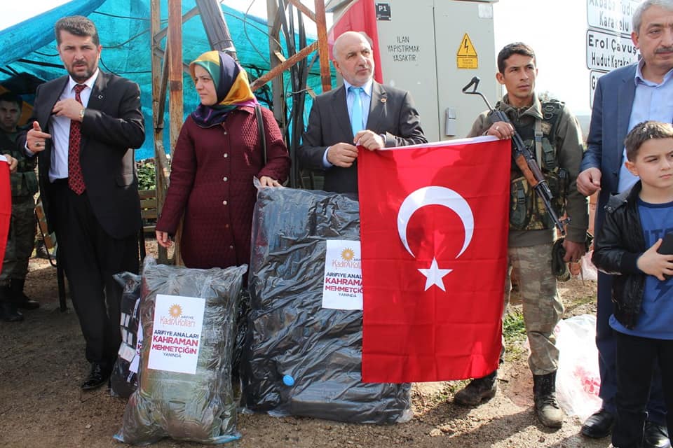 Hatay- Afrin sınırında Mehmetçiğimiz ile kucaklaşan Meclis Üyelerimizin teslim ettiği Arifiye’li anaların yaptığı el emeği göznuru boyunluklar,içlikler, çoraplar ve kışlık giyecekleri gören askerlerimiz duygulandılar.
