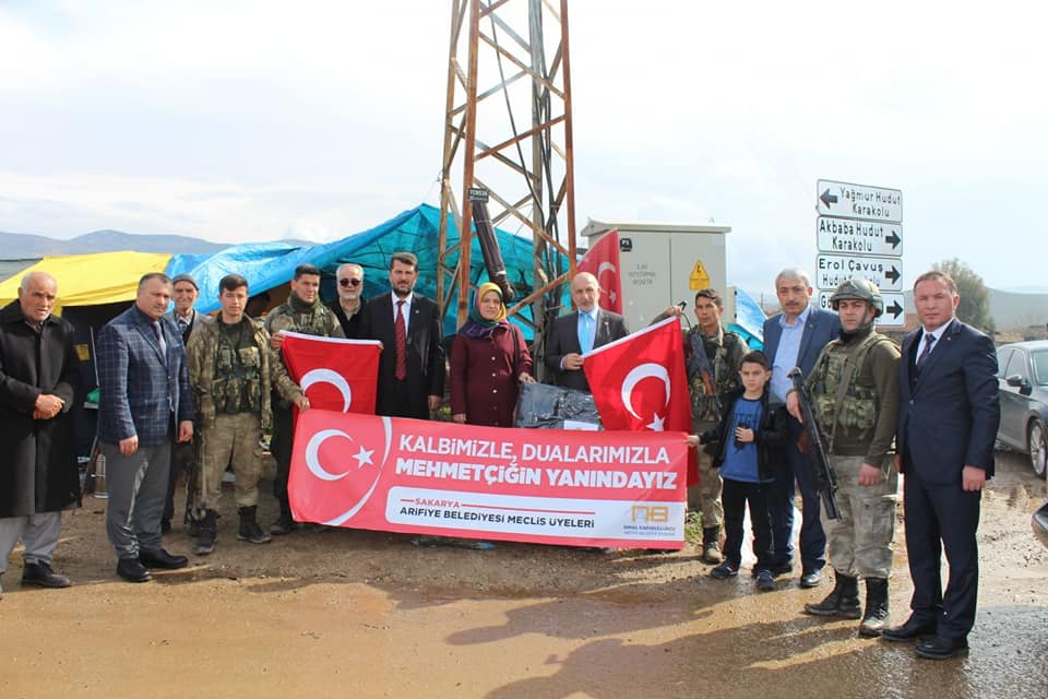 Arifiye Belediye Meclis Üyeleri Ahmet Safitürk,Mehmet Ayvaz,Mehmet Erhan Çetin,Vahit Sandal,Elif Çiğdem ve Muharrem Yavuz Suriye Sınırına askerlerimizin yanına gittiler.