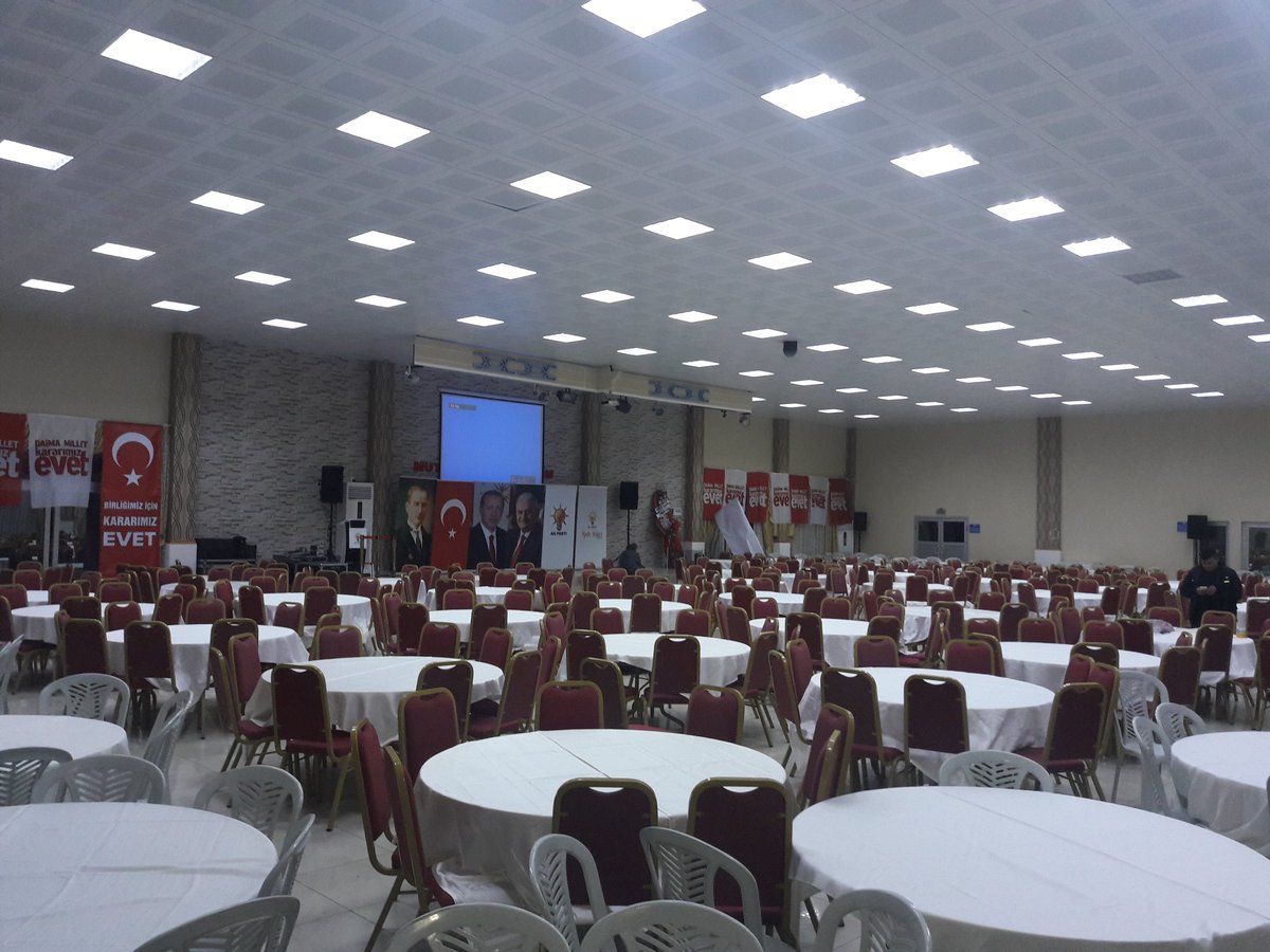 Dışişleri Bakanımızı ilçemizde karşılamak üzere Hanlı Düğün Salonunda ki hazırlıklar tamamlandı.