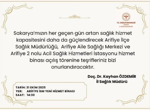 İlçemiz Fatih Mahallesinde açılışı gerçekleştirilecek olan hizmet binası, Arifiye İlçe Sağlık Müdürlüğü, 7 Hekimlik Aile Sağlık Merkezi,112 ASHİ binası ile Arifiye’nin yeni Sağlık Merkezi olacak.