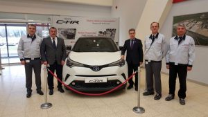 Toyota yöneticileri tarafından, kendisine fabrikanın çalışmaları hakkında bilgi verilen Kaymakam Yazıcı, Toyota’nın Arifiye Fabrikasında üretilen yeni Toyota C-HR’ı da yakından inceleme fırsatı buldu.