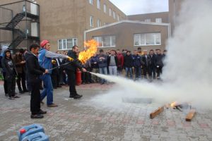 Proje kapsamında Eğitimlere Arifiye KYK Öğrenci Yurdu ile devam edildi. AFAD Gönüllüsü Yangın eğitmeni Aziz Y. tarafından verilen teorik ve uygulamalı eğitimde öğrencilere ‘Yangınlara Müdahale ve Yangınlarla Başa Çıkabilme’ konuları hakkında eğitimler verildi.