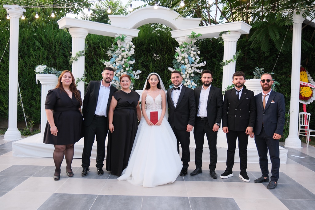 Şehrimizin gözde mekanlarından Pukka Garden’in yeşillikler içerisindeki bahçesinde gerçekleşen düğün törenine; Dertli ve Yanık Ailelerinin yakınları ile emekli banka müdürü Mustafa Dertli’nin görev yaptığı Yapı Kredi Bankası ve Arifiye Öğretmen Okulundan arkadaş grupları katıldı.