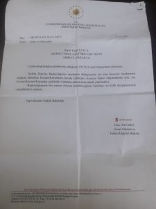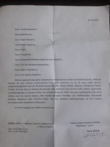 Yaşar YAYLA’nın talebini Cumhurbaşkanlığı İlgili Kurum olarak konuyu Sağlık Bakanlığına ilettiği belirtiliyor…