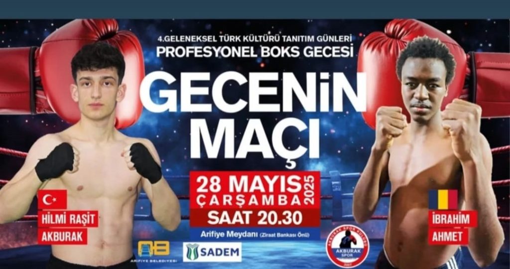 Arifiye ilçemizde 28 Mayıs Çarşamba akşamı profesyonel boks heyecanına sahne olacak. Akburak Boks Kulübü tarafından düzenlenen ve geleneksel hale gelen “4. Geleneksel Türk Kültürü Tanıtım Günleri Profesyonel Boks Gecesi” Arifiye Meydanı’nda gerçekleştirilecek.