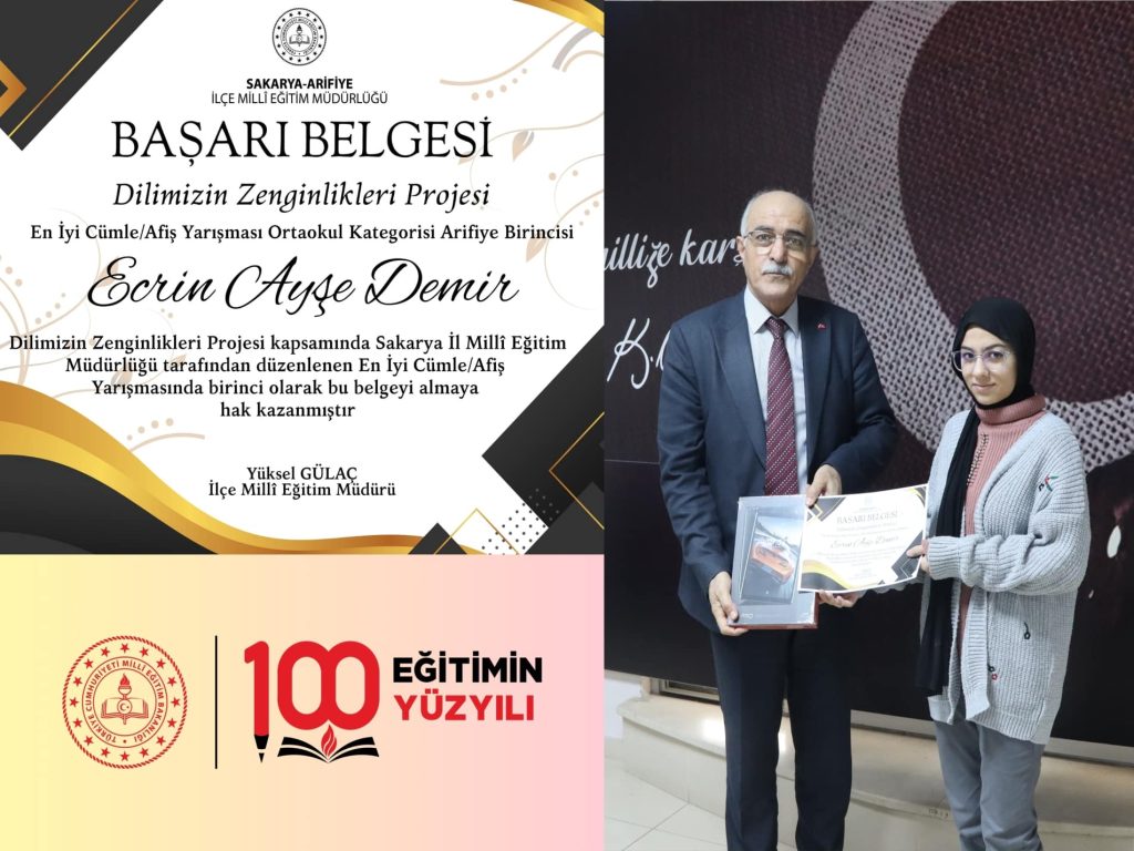 Ödüllerin temin edilmesi ve sağladığı katkılar dolayısıyla Arifiye Belediyesi’ne de teşekkür eden Müdür Gülaç, belediyenin eğitime verdiği desteğin öğrenciler üzerinde olumlu etkiler bıraktığını vurguladı.