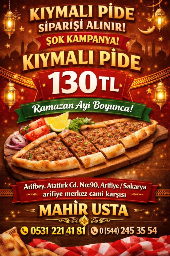 Ramazan Ayı boyunca Kıymalı Pideleri 130TL ‘ye Mahir Usta’dan sipariş edebilirsiniz.