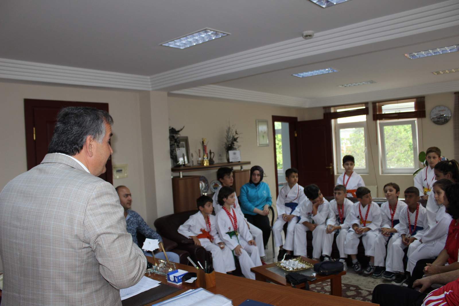 Ziyaretten duyduğu memnuniyeti dile getiren Başkan Karakullukçu; “Küçük şampiyonlarımızı can-ı gönülden tebrik ediyor, Karate Takımımızın Değerli Hocası Tayfun Kobaş’a, Arifiye’mize yaşattıkları bu gurur ve sevinç nedeniyle çok çok teşekkür ediyorum. Evet gençler, geleceğimiz sizsiniz. Arifiye’mizde sizleri spora teşvik etmek, ilçemize ve milli takımımıza şampiyon sporcular kazandırmak için tüm olanaklarımızı sizin emrinize veriyoruz. Sizler de, bizlere kazandığınız bu başarı ve derecelerle teşekkür etmiş oldunuz. İnanıyorum ki, gelecekte daha iyi dereceler kazanarak, Milli Takımımızda mücadele edecek, ülkemizi şampiyonluğa taşıyacaksınız. Hepinizi tekrar tebrik ediyor, başarılarınızın devamını diliyorum.” dedi.