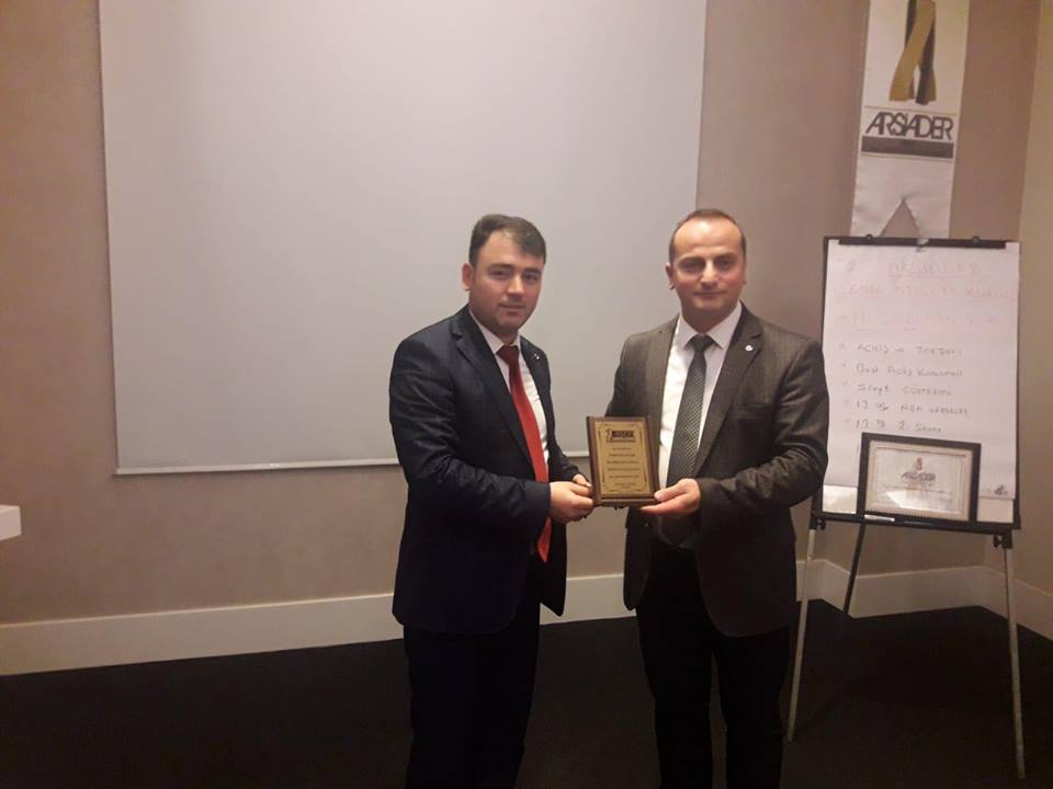 ARSİADER Yönetimi ve Üyeler adına Başkana Sürpriz Plaket verildi. Plaketi Arsiader Genel başk. Yard. Orhan TAY, İnsan Kaynakları Kom. Başk. Mehmet VURALOĞLU ve Yönetim Kurulu Üyesi Ahmet YILDIZ Tüm üyeler adına takdim etti…