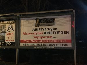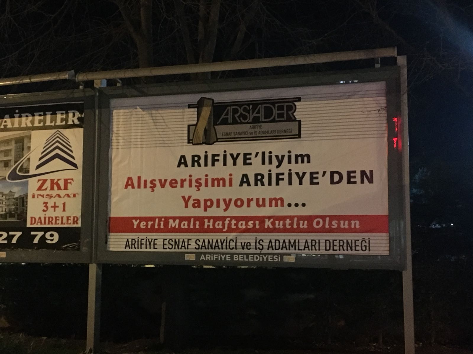 ARSİADER Kurucu Başkanı Fatih Fahri Yeter haber sitemize yaptığı açıklamada ”Yerli Malı Haftasında ilçemizde bir kampanya başlatmış bulunuyoruz.Arifiye’de ticareti daha da geliştirebilmemiz için birlikteliğimizi Esnafımız,İşadamalarımız ve halkımız ile pekiştirmemiz gerekiyor.Yerli Malı Haftası bizim için bir milat. Hafta dolayısı ile Arifiyeli’lerin üyelerimizden ve Arifiye’li esnafımızdan yerli firmaların ürünlerini almalarını önemle tavsiye ediyorum.İlçemiz de bu hafta ile ilgili bilboardlar da gereken tanıtım ve duyurularımız yaparak halkımızıda bilinçlendiriyoruz’’ dedi.