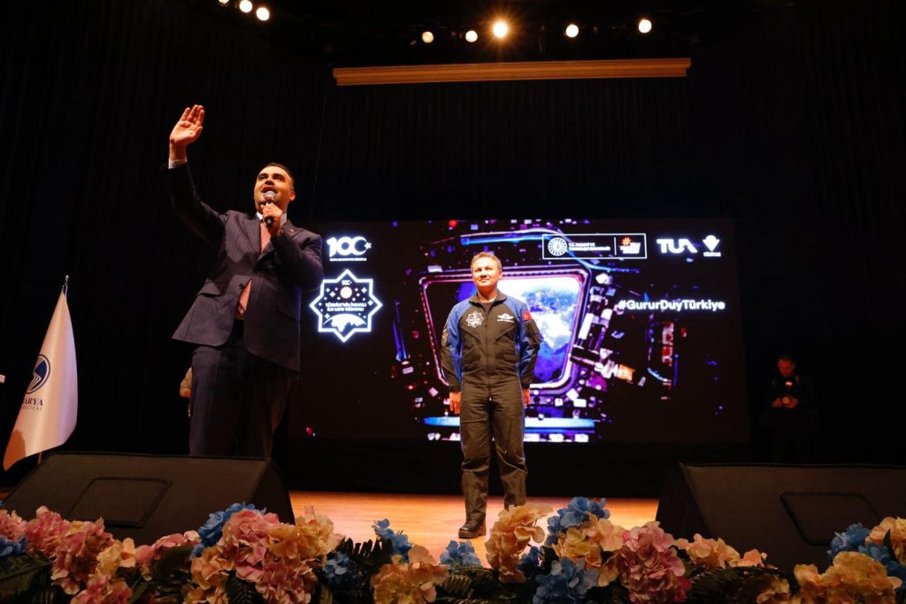 Amerika Birleşik Devletleri’nde (ABD) eğitimini tamamlayan Alper Gezeravcı, programlarının ardından Sakarya’ya geldi. Türkiye’nin ilk astronotu Gezeravcı, gençlerle buluşmasında uzay yolculuğu ile ilgili bilgi verdi. Turgut Özal Kültür ve Kongre Merkezi’nde üniversiteli öğrenciler ile buluşan Gezeravcı yoğun ilgiyle karşılandı. Uluslararası Uzay İstasyonu’nda (ISS) yürüttüğü deneysel çalışmalar hakkında da bilgiler veren Gezeravcı, “Yaptığımız bütün çalışma süreçlerinde daha öncesinde hava kuvvetlerindeyken yurt dışına gidip geldiğinde yüksek lisansta farklı uçak tiplerinin eğitiminde her daim mutlu olduğum ve gurur duyduğum bir husus var Türk insanının pratik zekası. Eğitim öğretim Hayatınızın devam ettiği süreçte ya da ilerleyen dönemde mezun olduktan sonra kariyer yaşamınızda yurt dışına gittiğinizde karşılaştığınız farklı örneklerde benim duyduğum bu gururu ve mutluluğu emin olun yaşadığınız her olayda Türk insanının yıllara sahip badirelerle başa çıkabilme refleksini geliştirmiş bünyesinde, beraberinde taşıdığı pratik zekanın nerelere kadir olduğunu bizzat kendini zehirleme imkanı bulacaksınız. Bu pratik zekayla müthiş derecede gurur duyuyorum. Yapmış olduğunuz operasyonun içerisinde de farklı işlem adımlarında, farklı operasyonel süreçlerde her daim işin kilitlendiği bir noktada düşünmeye dair fırsat bulamadan vücudunu ortaya koymuş olduğu pratik zeka bu Türk insanına mahsus. Dolayısıyla zaten yüksek olağan zekanın zaten yüksek olan potansiyeliniz yanında her daim size can simidi gibi sizi ayakta tutacak olan bu pratik zekanızla da gurur duyun” dedi.
