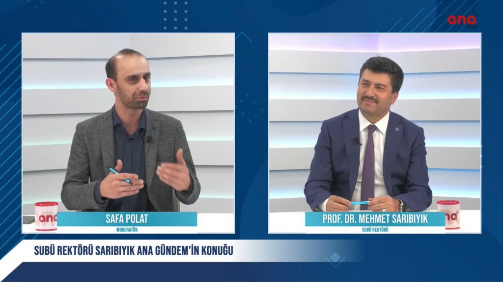 Sakarya Uygulamalı Bilimler Üniversitesi (SUBÜ) Rektörü Prof. Dr. Mehmet Sarıbıyık, Ana TV ve Dolu Radyo ortak yayınında ‘Ana Gündem’ programının konuğu oldu. Gazeteci Safa Polat’ın sorularını cevaplandıran Sarıbıyık; pandemi dönemindeki uzaktan ve yüz yüze eğitim süreci, +1 Uygulamalı Eğitim Modeli, üniversitenin hedefleri, kuruluştan bugüne yapılan çalışmalar ve kampüs yerine ilişkin bilgiler verdi.