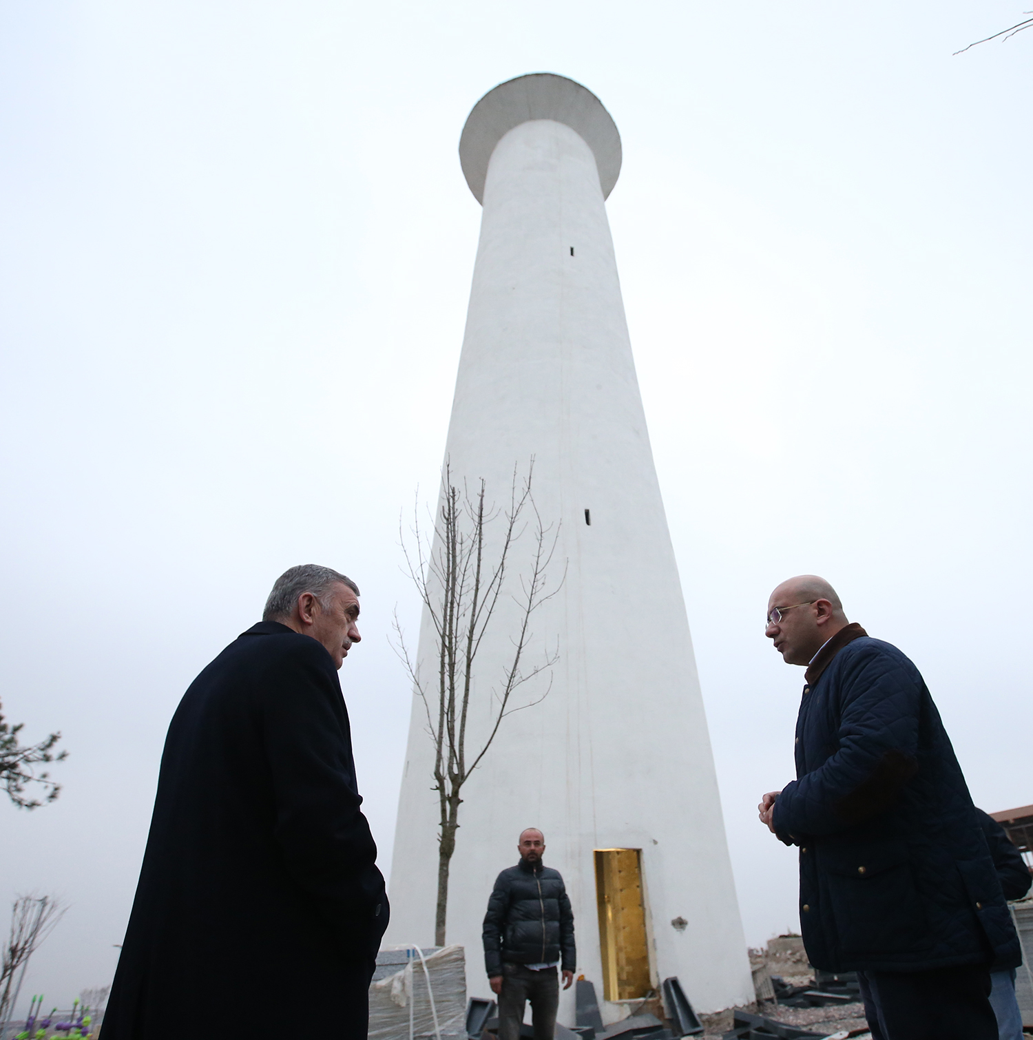 Başkan Toçoğlu, “Projemiz zengin sosyal donatı alanlarına sahip. Çocuklarımız için tasarladığımız oyun alanlarındaki işlemlerimizi tamamladık. Kafeterya kısmımızda ekiplerimiz yoğun bir şekilde çalışmalarını sürdürüyor. İnce işçilikler yapılıyor. Projemizin içerisinde bulunan 37 yıllık kuleyi de muhafaza edeceğimizi ve seyir terası haline dönüştüreceğimizi ifade etmiştik. Güçlendirme çalışmalarımızı tamamladık. Teras çeliklerinin montajları başladı. 35 metre yüksekliğe sahip kuleyle şehrimiz izlenebilecek. Çevre düzenlemeleri de ekipler tarafından ivedilikle yürütülüyor” diye konuştu.