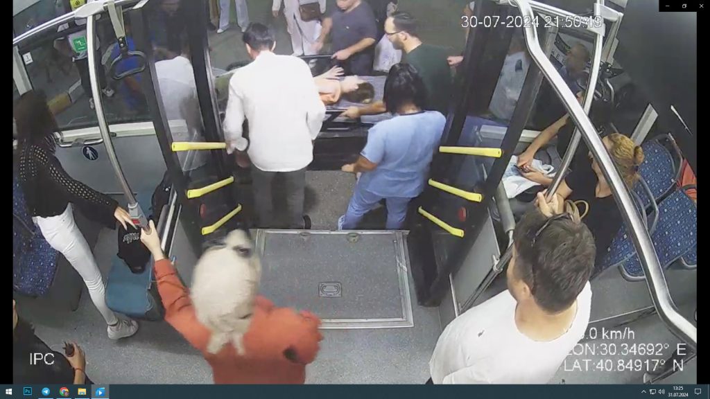Durumla ilgili bilgilendirilen Büyükşehir Belediyesi şoförü Erhan Kaş, Büyükşehir Merkez Koordinasyon Amirliği’ne anons geçerek güzergahı hastane yönüne çevireceğini bildirdi. Bu arada araçta, bazı yolcular fenalaşan kişiyi bulunduğu koltukta sabit bir şekilde yatırarak ilk müdahale yaptı.