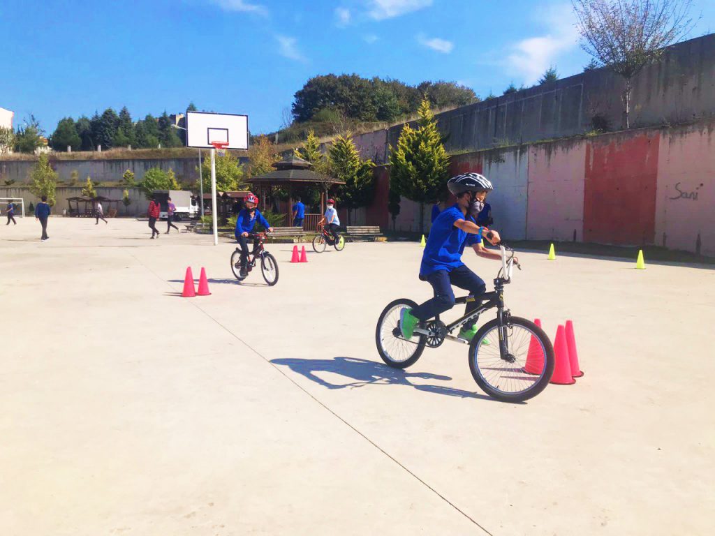 Okul içinde belirlenen alanlara dubalar yerleştirilen eğitimciler, sürüş esnasında kask kullanımının önemini anlattıkları öğrencilere sürüş tekniklerini gösterdi. Trafiğe açık alanda sürüş esnasında dikkat edilmesi gereken hususların anlatıldığı eğitimde öğrenciler bisiklet üzerinde sürüş eğitimi aldı. Program kapsamında, 18 – 19 Eylül Cumartesi ve Pazar günü Ekrem Karaberberoğlu Tesisleri’nde Ayak Tenisi Türkiye Kupası elemeleri yapılacak. Program 22 Eylül’e kadar her gün farklı bir etkinlikle devam edecek.
