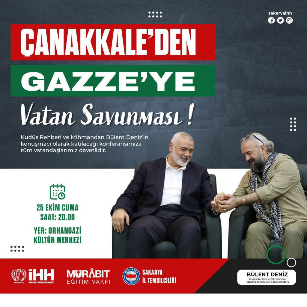 Sakarya İHH, Memur-Sen Sakarya Temsilciliği ve Murabıt Eğitim Vakfı ortaklığında Sakarya’da 25 Ekim Cuma günü “Çanakkale’den Gazze’ye Vatan Savunması” konferansı düzenlenecek.