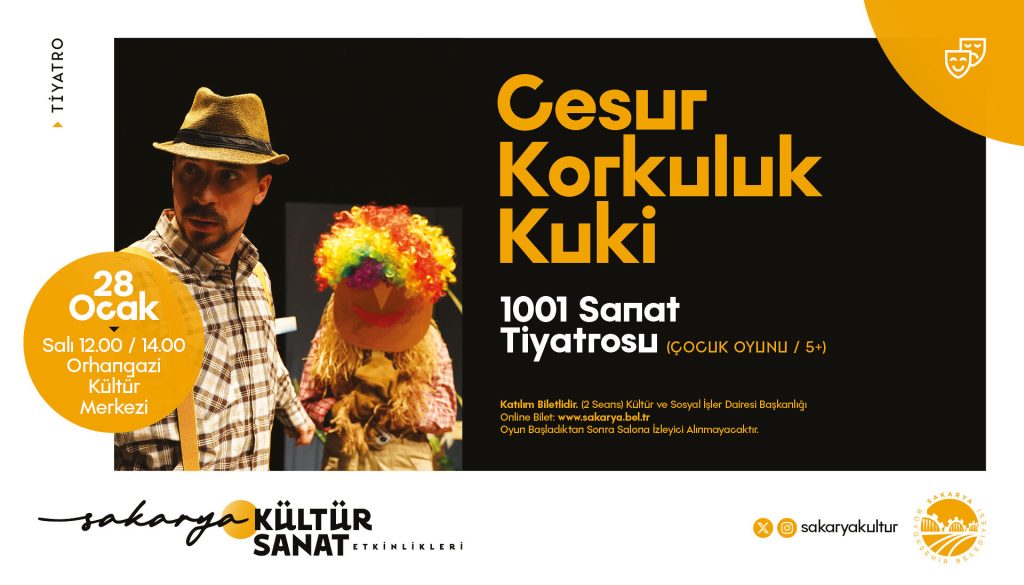 Büyükşehir Belediyesi Ocak Ayı Kültür Takvimi kapsamında, 28 Ocak Salı günü Orhangazi Kültür Merkezi’nde “Cesur Korkuluk Kuki” adlı çocuk tiyatro oyunu ile ara tatildeki öğrencilere neşe katacak. İki ayrı seansta sahnelenecek olan oyun için kayıtlar internet üzerinden açıldı.