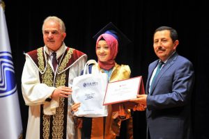 Törende mezunlara ve ailelere de seslenen Rektör Elmas, şunları söyledi: “Evlatlarınız hür düşünceli, insanlığa saygılı, milli ve manevi değerlerine bağlı, demokrat, vizyon sahibi, araştırmacı ve sorgulayıcı bireyler olarak bugün mezuniyet coşkusunu yaşamaktadırlar. Bugün onlar için yapmış olduğunuz sonsuz fedakârlıkların karşılığını görüyorsunuz. Mensuplarıyla her geçen gün büyüyen üniversitemiz, gelişmesinde en büyük desteği mezunlarından, öğrencilerinden ve onların başarılarından almaktadır. Burada edinmiş olduğunuz bilgi ve yetkinliklerle ülkemiz ve dünyanın her yerinde başarılı olacağınıza yürekten inanıyorum. Mezun olduğunuz üniversiteniz ile her zaman gurur duyun ve bağınızı hiçbir zaman koparmayın. Yolunuz açık, şansınız bol, geleceğiniz aydınlık olsun.”