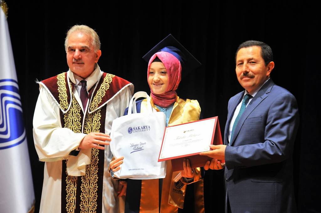 Tören, konuşmaların ardından bölümlerinde ve programlarında birinci olanlara plaketlerinin ve hediyelerinin verilmesi ile devam etti. Üniversite birincisi İnsan Kaynakları Yönetimi bölümünden Nagehan Çakır’a plaketini Vali İrfan Balkanlıoğlu ve Rektör Prof. Dr. Muzaffer Elmas verdi. Üniversite ikincisi Yönetim Bilişim Sistemleri bölümünden Feyza Tekin’e plaketini Sakarya Milletvekili Şaban Dişli ve Rektör Yardımcısı M. Ali Yalçın verdi. Üniversite üçüncülerinden Alman Dili ve Edebiyatı bölümünden Salim Ziyal’a plaketini Büyükşehir Belediye Başkanı Zeki Toçoğlu verirken, Makina Mühendisliği bölümünden Halil Macar’a plaketini Cumhuriyet Başsavcısı Mehmet Özel ve Rektör Yardımcısı Prof. Dr. Musa Eken,İnşaat Mühendisliği bölümünden Yusuf Aktaş’a plaketini İl Emniyet Müdürü Eyüp Pınarbaşı verdi. Meslek Yüksekokulları birincisi ise Ali Fuat Cebesoy MYO’dan Eylül Zeynep Atay oldu.