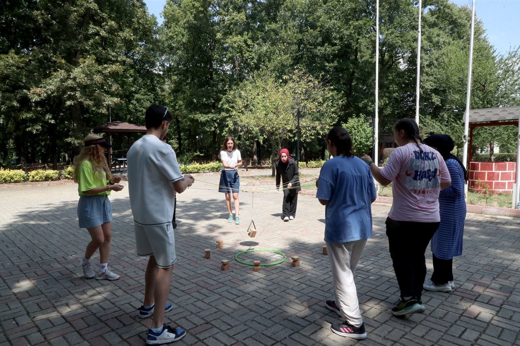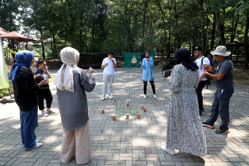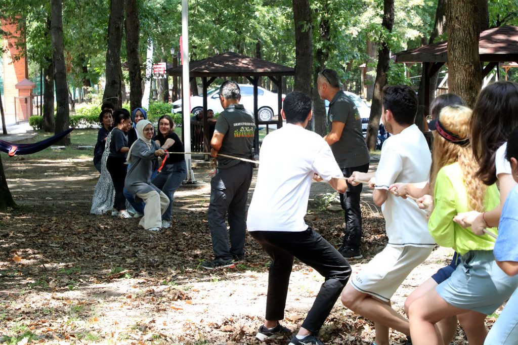 Orman içinde yürüyüş parkuru sonunda ip çekme ve denge oyunu oynandı, ortaya birbirinden renkli görüntüler çıktı.
