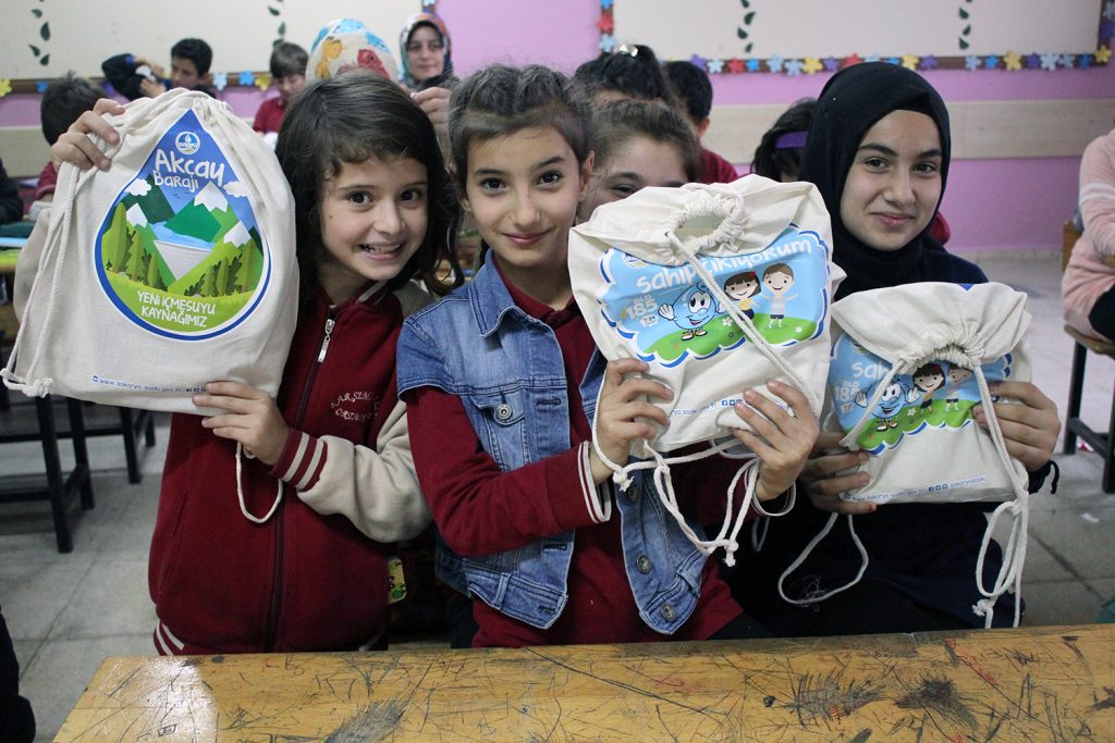 SASKİ tarafından şehir genelinde her yaş grubundan öğrencilere yönelik olarak düzenlenen Bilinçli Su Kullanımı Eğitimleri’nde öğrencilere hediye edilen plastik eğitim çantaları bırakılarak, sırt çantası olarak da kullanılabilen kumaş çantalara geçildi.