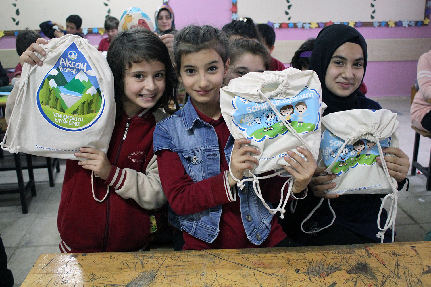 Sakarya Büyükşehir Belediyesi Su ve Kanalizasyon İdaresi (SASKİ) tarafından şehrin dört bir yanında, her yaş grubundan öğrencilere yönelik olarak düzenlenen Bilinçli Su Kullanımı Eğitimleri hız kesmeden devam ederken, öğrencilere her eğitim sonunda hediye edilen eğitim çantaları da çevreci yaklaşımın izlerini taşıyor.
