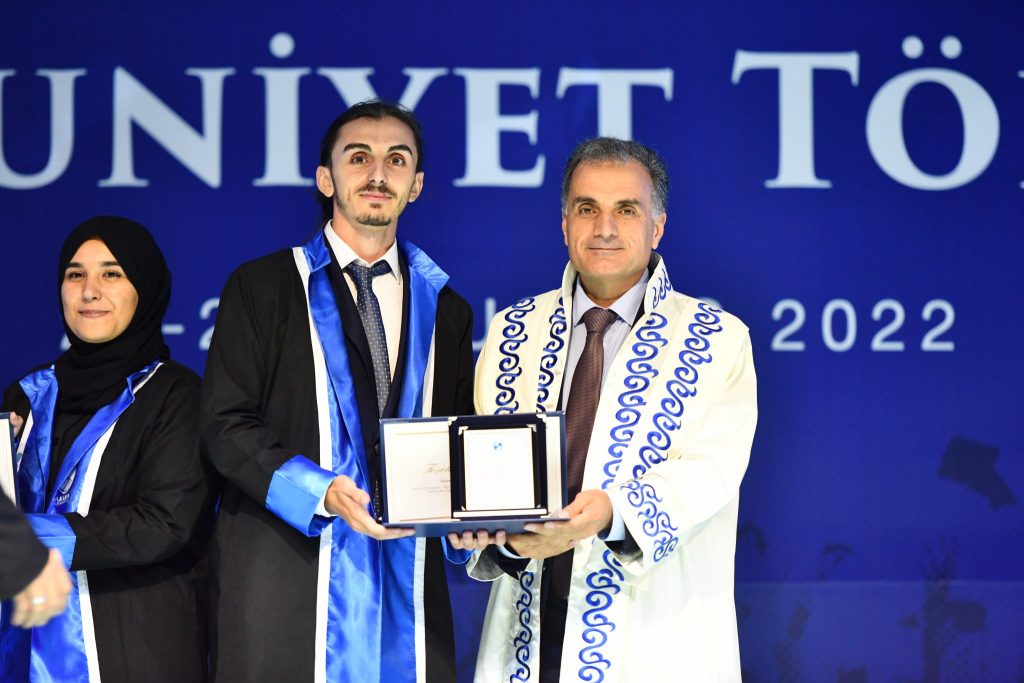 2021-2022 Eğitim-Öğretim Yılı Eğitim Fakültesi birincisi Ceyda Evren, fakülte ikincisi Çiğdem Çevik ve üçüncüsü Mehmet Küçük olurken İşletme Fakültesi birincisi Resul Emin Küçük, fakülte ikincisi Widad Mm Habbaub ve fakülte üçüncüsü Burak Kayataş oldu. Fakülte birincilerinin konuşması ve diploma yemininin ardından protokol ve hocalar tarafından mezuniyet belgeleri verildi. Kep atarak mezuniyet coşkusu yaşayan mezunlar, aileleri ve hocalarıyla fotoğraf çektirerek bu güzel anı ölümsüzleştirdiler.