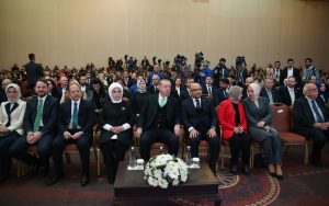 Her buluşun arkasında ona hayat veren zihniyet ve dünya algısının olduğuna dikkat çekerek, Müslümanların atom bombası, nükleer füze gibi kitle imha silahlarına öncülük etmemelerinin temel sebebinin, geri kalmışlıkları olamayacağını kaydeden Cumhurbaşkanı Erdoğan, “Bu tarz bir teknoloji her şeyden önce Müslümanların zihin yapısına hayata, insana ve tabiata bakışlarına aykırıdır. Dünya hayatını geçici gören, adaleti, merhameti, paylaşmayı merkeze alan İslam düşüncesi böylesi bir gelişmeye manidir” dedi.