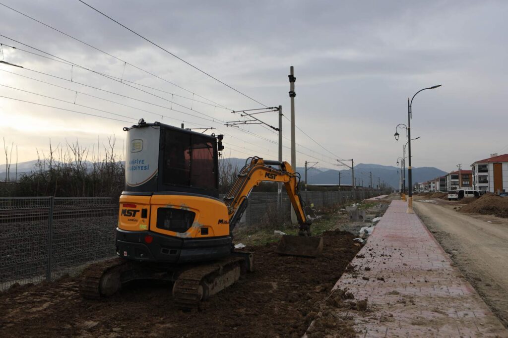 Cadde genelinde kaldırım çalışmaları ile otopark alanı tamamlanırken, aydınlatma direklerinin montajı sürüyor. Rekreasyon çalışmaları kapsamında ise toprak serim ve tesviye işlemleri devam ediyor.