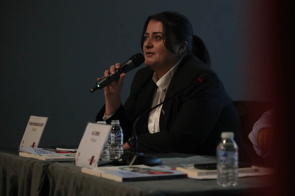 Yazar Peren Birsaygılı Mut, “Filistin’i Filistin yapan, kimliğine ve kültürüne dahil pek çok şey siyonist uygulamalar tarafından ortadan kaldırılmaya çalışılıyor. İşte tam burada Filistin direniş edebiyatı çok kritik bir görev üstleniyor. 30 seneden beri büyük bir direniş gösteriyor. Filistin’de bu zamana kadar şehit edilen herkese, tüm şairlere, yazarlara ve edebiyatçılara Allah’tan rahmet diyorum. Bize kalemin onurunu, kalemin haysiyetini gösterdikleri için Allah hepsinden razı olsun” dedi.