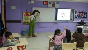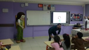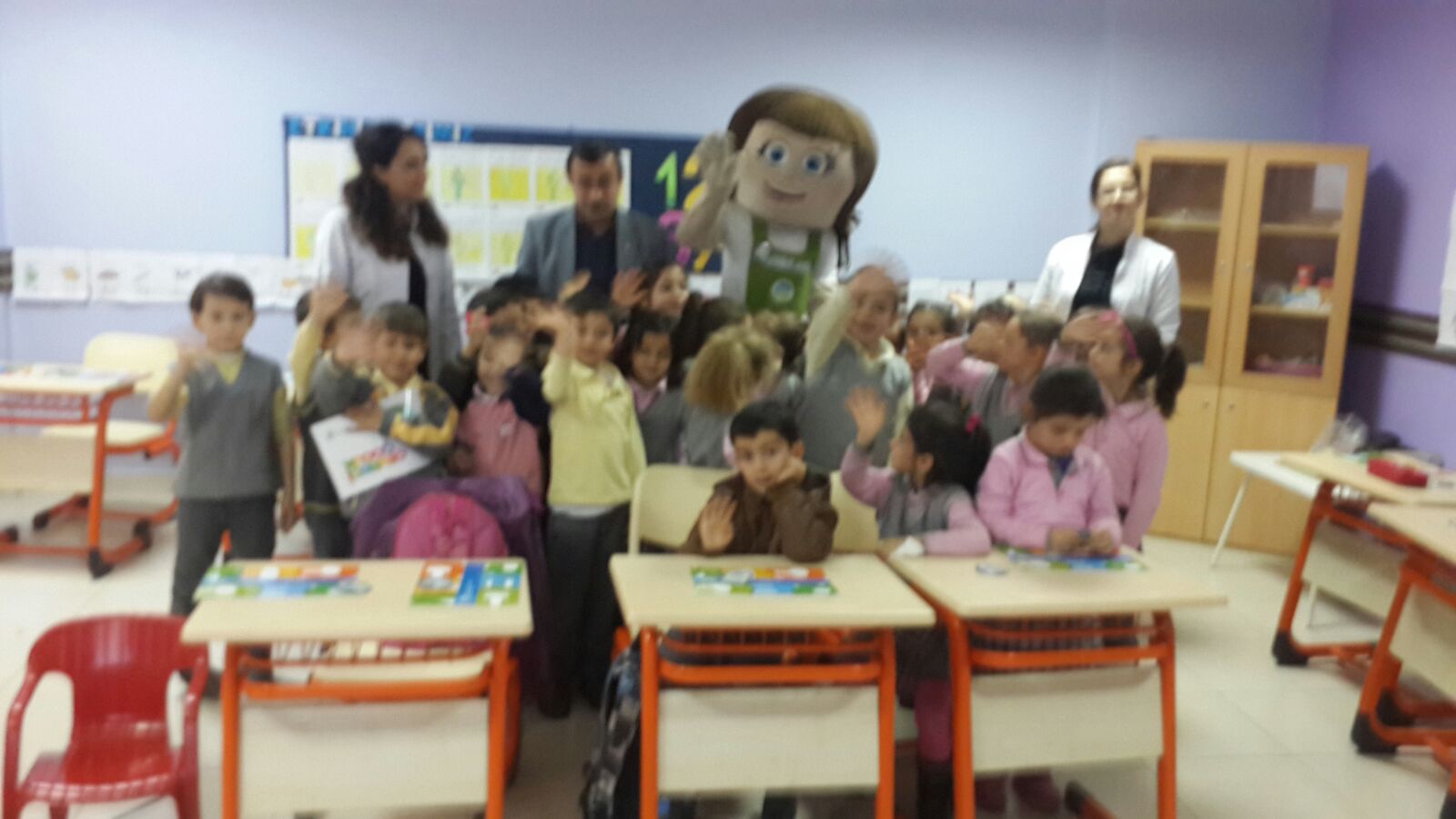 Proje kapsamında ilçemiz Hacıköy İlkokulunu ziyaret eden proje koordinatörleri okulun 1.sınıflarına Çevremizi koruma ve kollama hakkında bilgi verdikten sonra onları tomurcuk ile tanıştırdılar. Atık pil ve diğer atıklar konusunda Tomurcuktan bilgiler alan minikler Tomurcukla mini videolar izlediler.
