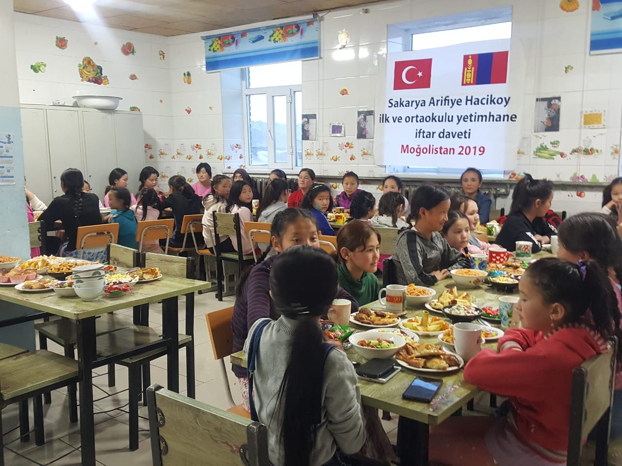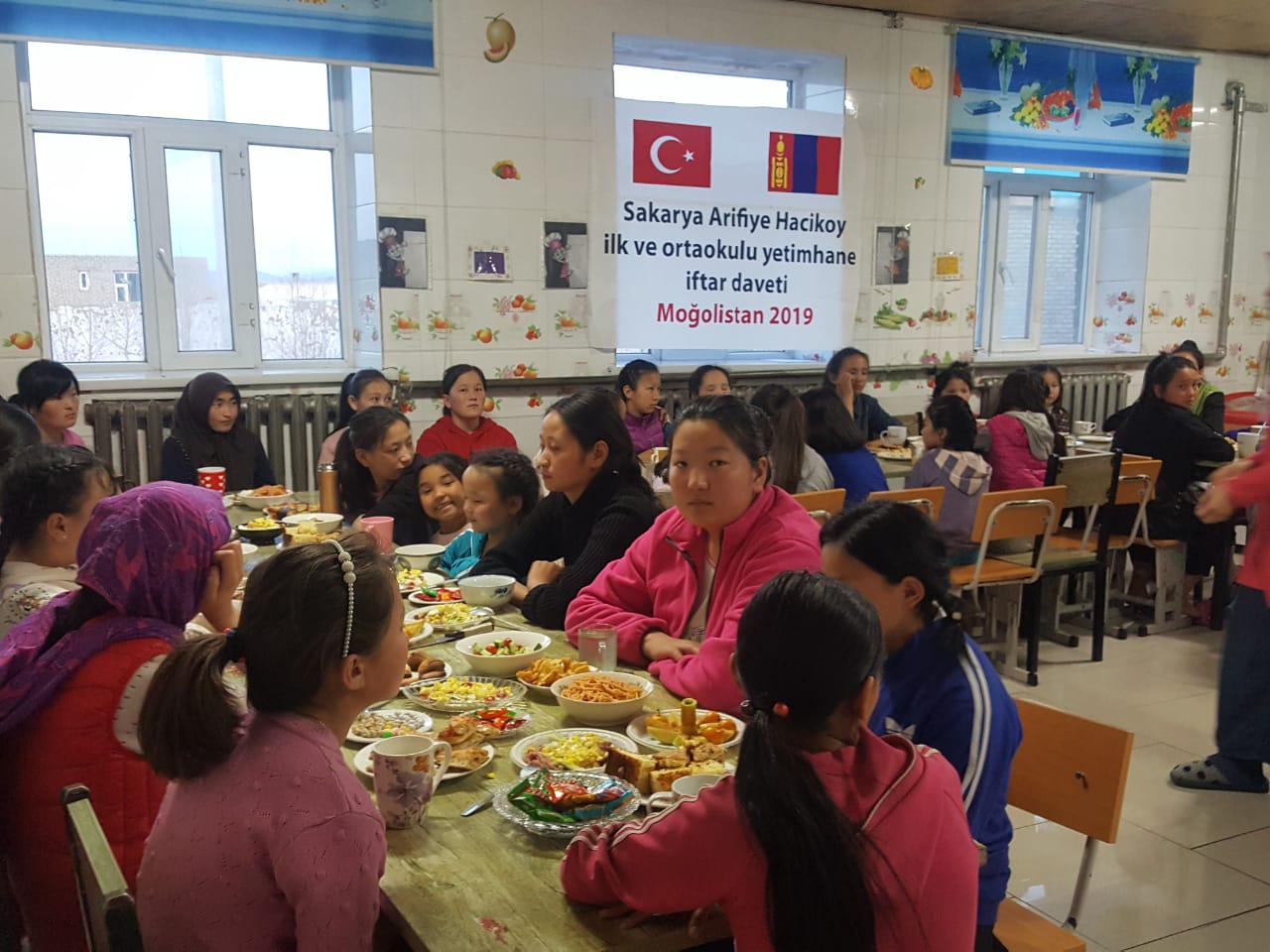 Okul öğretmenleri biraraya gelerek Mübarek Ramazan ayında Moğalistan daki bir yetimhanede iftar verdiler.