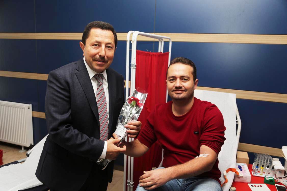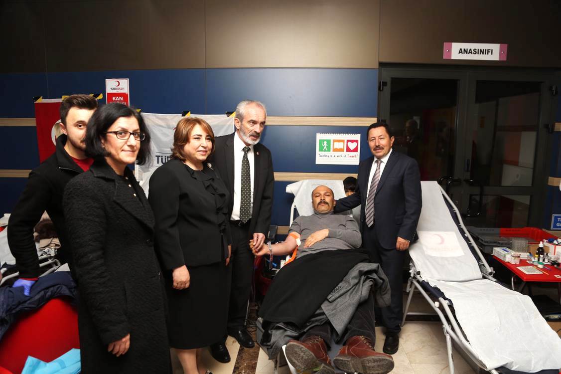 Şehit Erol Olçok Anadolu Lisesinde düzenlenen program öncesi Türk Kızılayı tarafından okulda açılan stantta kan veren öğretmenleri ziyaret eden Vali Balkanlıoğlu, öğretmenlerimizin sadece eğitimle değil kanlarıyla da hayat verdiklerini söyleyerek duyarlılıklarından dolayı teşekkür etti.