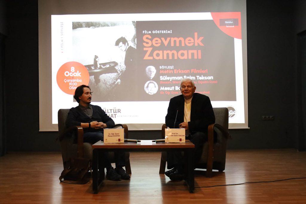 Metin Erksan’ın yönetmenliğini üstlendiği Türk sinemasının başyapıtlarından 1965 yapımı ‘Sevmek Zamanı’ film beyaz perdeye yansıtıldı. Prof. Dr. Süleyman Saim Tekcan ve Dr. Öğr. Üyesi Mesut Bostan, gösterim sonrası izleyicilerle söyleşide buluştu.