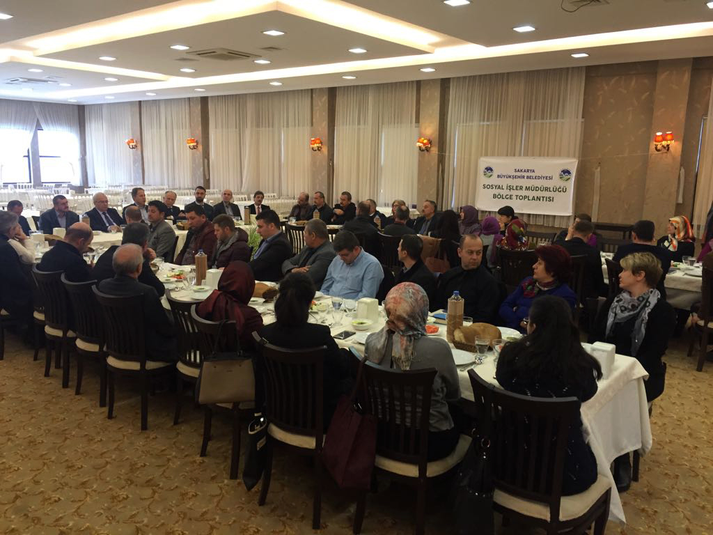 Sakarya Büyükşehir Belediyesi Sosyal Hizmetler Dairesi Başkanlığı tarafından başlatılan istişare toplantılarının bu seferki adresi Adapazarı oldu. Adapazarı Belediyesi’nin ev sahipliği yaptığı toplantı Reisoğlu Tesisleri’nde gerçekleştirildi. Toplantıda Sosyal Hizmetler Dairesi Başkanı Davut Yüce, Sosyal Hizmetler saha personeli, ilçe belediye başkan yardımcıları ve şube müdürleri yer aldı. Toplantıda soğuk hava koşullarında yapılması planan çalışmalar ve bu alandaki hizmetlere dönük istişarelerde bulunuldu.