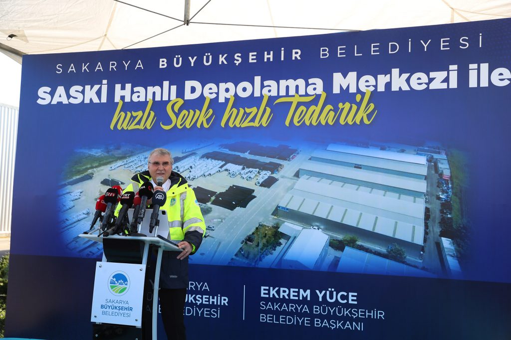 Açılışta konuşan Başkan Yüce vatandaşa hizmet için projeler üreterek, yeni yatırılar yaptıklarını belirterek, “Sakarya Büyükşehir Belediyesi olarak tüm birimlerimizle birlikte hemşerilerimize hizmet etmek adına gündüz gece demeden gayretle çalışıyoruz. Bir yandan hemşerilerimizin hayatını kolaylaştıracak projeler üretiyor bir yandan da şehrimizi yarınların güçlü Türkiye’sine hazırlayacak vizyon projeler geliştiriyor ve yatırımlar yapıyoruz Hayata geçirdiğimiz bu depo sayesinde şehrimizin farklı bölgelerinde bulunan ve zaman zaman kısmi karışıklıklara yol açan depolama uygulamasından kurtulmuş oluyoruz. Bundan böyle tüm ekipmanlarımız aynı yerde olacak ve kolaylıkla bakımı yapılacaktır. Gerekli tedbirlerle de en iyi şartlarda muhafaza edilmiş olacaktır. Hanlı yerleşkemiz, toplamda 133 bin m2 alan üzerine kuruludur. Bu alanın 85 bin m2’si açık depolama alanıdır. Yaptığımız çalışmayla geçmişte 2 bin 300 m2 olan kapalı hangarımızı genişleterek 5 bin m2’ye çıkarttık. 2 bin paletlik depolama alanımızı 3 bin 250 palete çıkarttık. Depo alanımız toplamda 2 bin çeşit ürünü aynı anda muhafaza edebilecek kapasitededir” dedi.