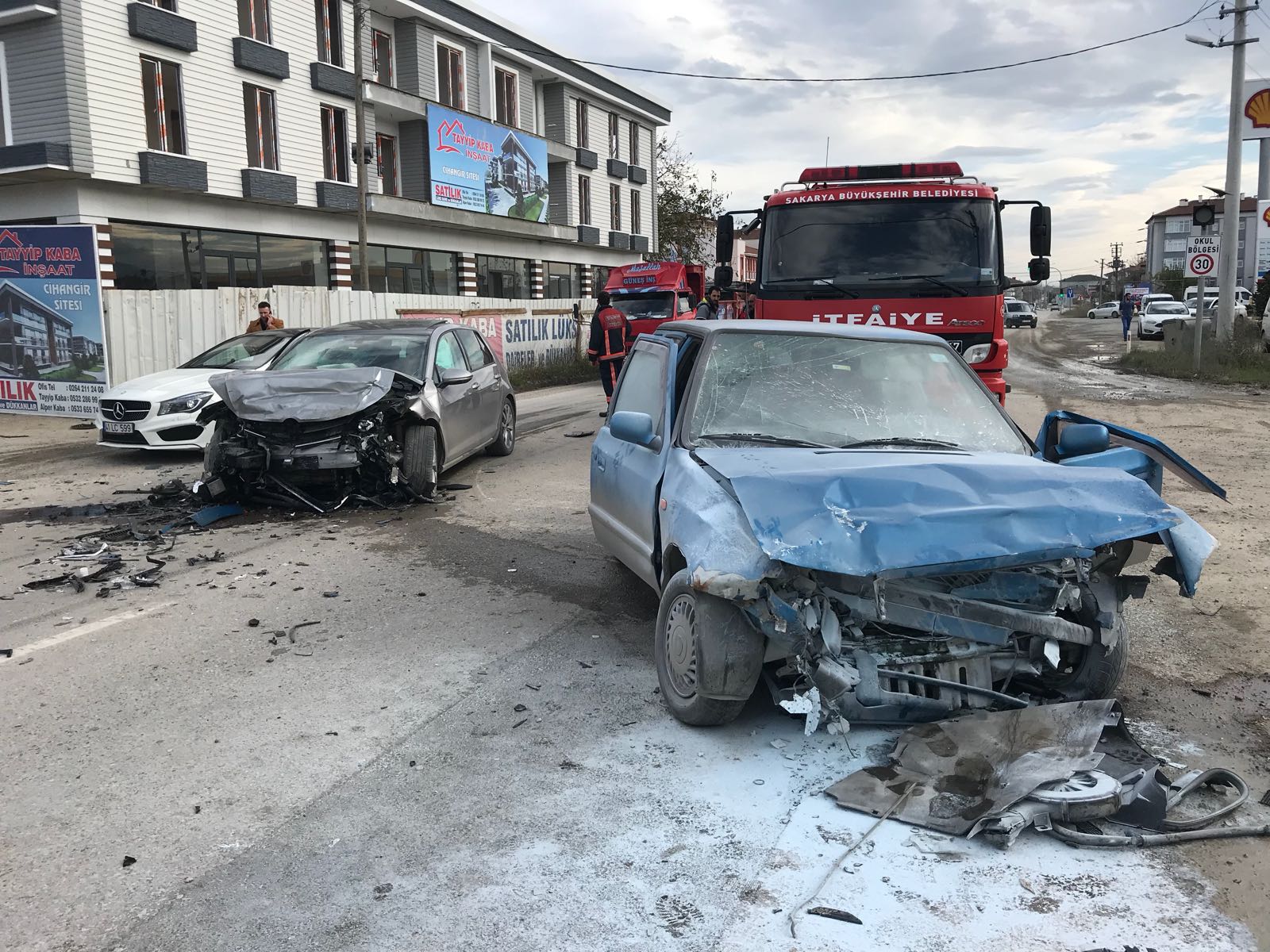 İlçemiz Sapanca Çevre yolu üzerinde Shell benzin istasyonu yakınlarında iki ayrı yönden gelen araçlar kafa kafaya çarpıştı.Edinilen ilk bilgilere göre kazada 3 kişinin yaralandığı söyleniyor.