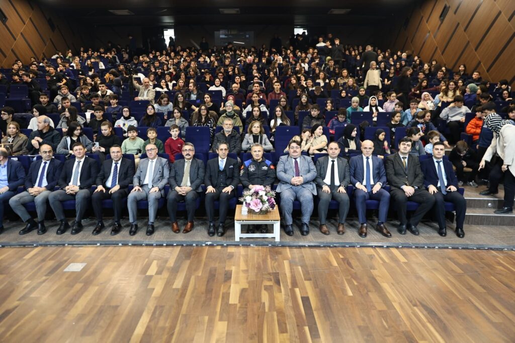 06 Ocak Salı günü saat 13.30’da Şehit Erol Olçok Anadolu Lisesi Konferans Salonu’nda düzenlenen “Türkiye Yüzyılında Ülkemizin Uzay Araştırmaları Vizyonu” konulu programa yaklaşık 500 öğrenci katılım sağladı.